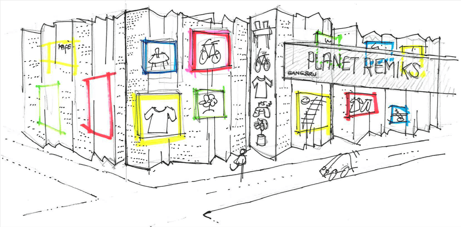 Senteret vil være en kombinasjon av bruktbutikk, reparasjonstjenester, kurs, kafé, restauranttilbud og mye mer. Grønne gründerbedrifter og miljøvernorganisasjoner kan også inkluderes i konseptet.