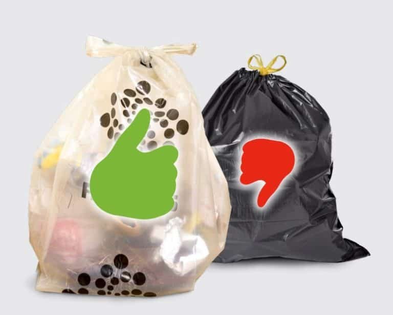 På grunn av stor risiko for at farlig avfall havner i sorte sekker er det nå forbudt å levere avfall i disse. Alle avfallssekker som ikke er blanke må sprettes opp på returstasjonen før du får levert avfallet.