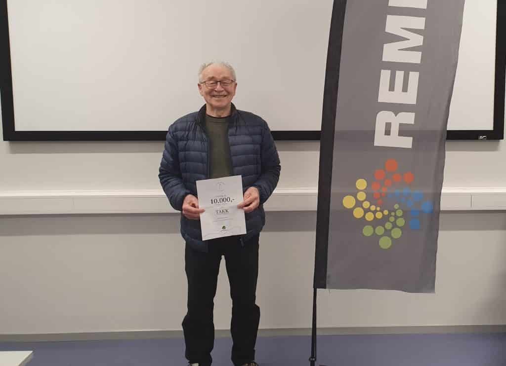 Jens er en ivrig pensjonist og har holdt på med å skylle, brette og skrive navn og telefonnummer på sine drikkekartonger i mange år. – Selv mine døtre ble usikre på om det hadde noe for seg, men jeg ville ikke gi meg, smiler han. – Se der, jeg fikk rett. På vegne av Grønt Punkt Norge overleverte Remiks premien.